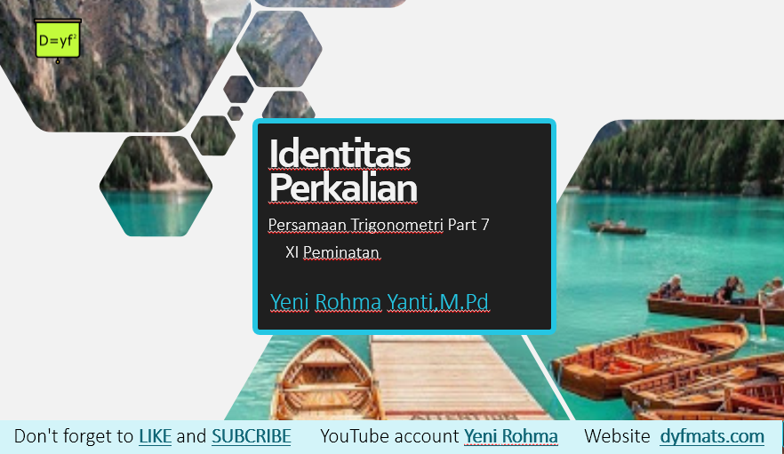 Identitas perkalian pada trigonometri yang mana menjelaskan tentang perkalian trigonometri dan dirubah menjadi penjumlahan trionometri. Lebih jelas silahkan lihat video berikut: untuk latihan soal ada pada video dan silahkan kirim ke google class jangan lupa untuk melakukan absensi kehadiran hari ini Memuat…