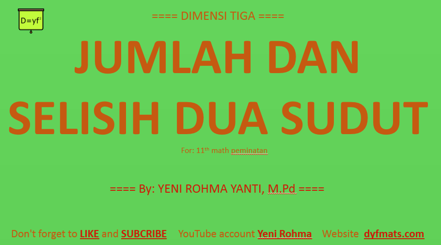 Sudut rangkap pada identitas trigonometri merupakan salah satu materi yang berada pada persamaan trigonometri. materi yang mempermudah dalam menentukan nilai dari persamaan trigonometri. untuk lebih jelasnya silahkan lihat materi pada video berikut: Untuk latihan soal silahkan lihat pada video. untuk pengerjaanya silahakan di video buktinya upload pada youtube masing-masing […]